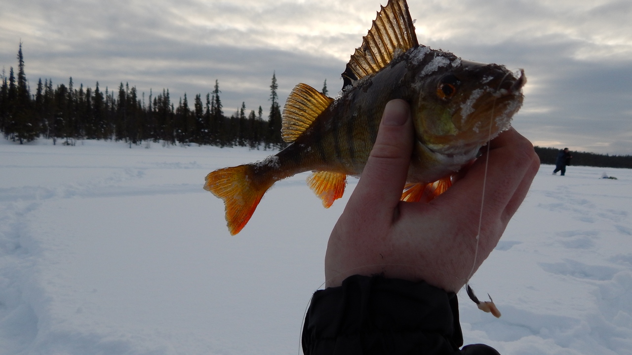 Ну приехали мы значит снова на озеро,первые забросы удочек показали что окунь далеко не активен как вчера,он клевал да,но так что с лунки достанешь одного,максимум два.Помучившись с мормышками и "говнюками" я решил разловить свой "заколдованный" единственный балансир.И что вы думаете,как только он упал на дно и я его стал приподымать то почувствовал тычок и приятная тяжесть повисла на том конце лески