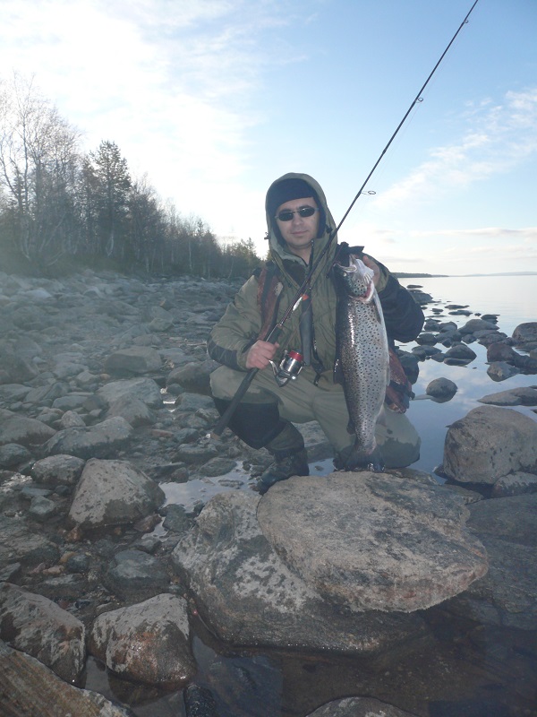 Ilya Swift писал(а):Решили с друзьями подорожить на Имандре, на выходных. Товарищ Саня уехал пораньше в субботу, с маленькой надувнушкой, с напарником. В итоге в обед прислал ММС-ку с очень неплохим кумжовым лохом, взятым на яркий составничок И рассказом о еще одной нереализованной поклевке и...огромным кол-ом зацепом за сетиПодумав-поглядев, с другом Димой, собрали лодку с мотором и в ночь двинули в путь. Встретились с Саней, взвесили его трофей. Потянул на 3420г. Желудок пуст. Выплыли на воду в половину второго ночи, минут через 15 первая поклевка. Три резких рывка, визг фрикциона и сход. Осмотр воблера ничего не показал. Подзатянул чутка фрикцион и на второй круг. Где-то через часок встали по края бровки и решили в дрейф покидать. Поставил узенькую беленькую колебалочку 14г и решил пробить бровку. Метрах в 15 от лодки "мертвый зацеп" который через секунду резко пошёл в сторону. Мощный всплеск и к лодке подплывает измочаленный кусок плетенки...То ли щука крупная, то ли очень немаленькая кумжа, перетершая об камни или пасть шнур...Адреналин хлещет