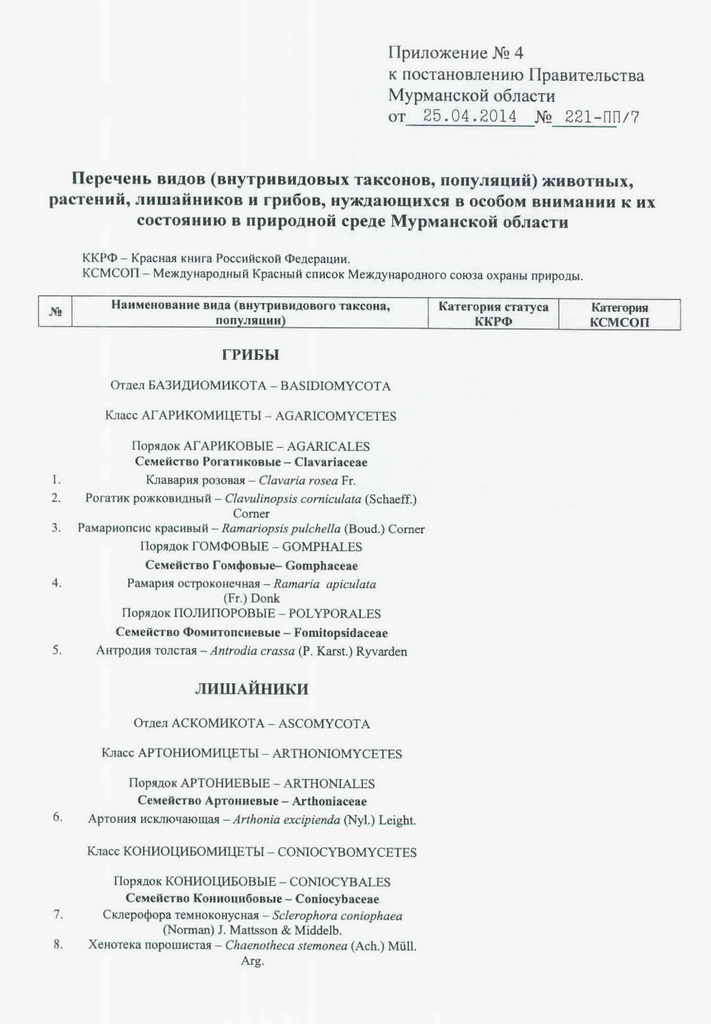 Приложение № 1 к Постановлению Правительсва Мурманской области № 221-П/7 от 25 апреля 2014 года