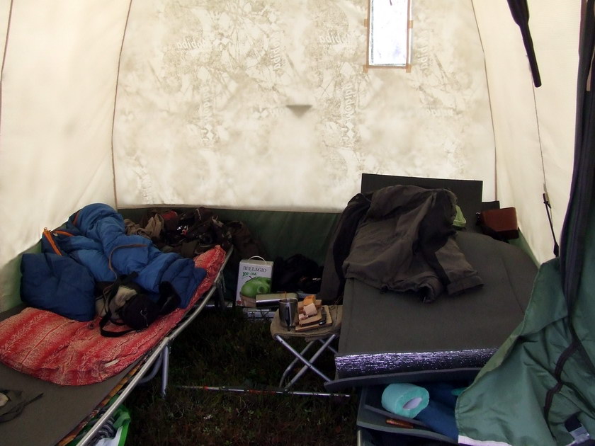 "приятно холодил" некоторые части тела при низкой температуре, а низкая посадка создавала проблему при вставании, потому что держаться в палатке можно только за печку с трубой и