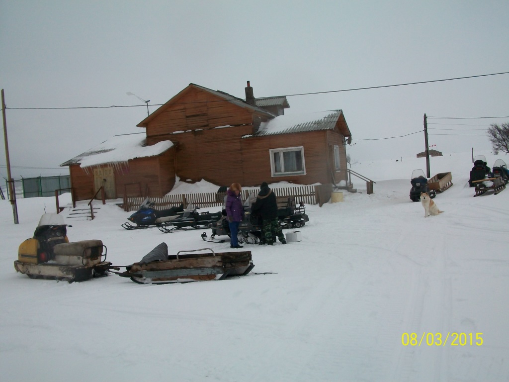 На 8 Марта решили поехать в Кузомень,порыбачить и поздравить супругу Власовича.Накануне Власович предупредил что ночью будет непогода,но разве нас что то может остановить?! Муж утром вышел посмотрел видно ли машину из под снега,посмотрел на моё выражение лица и сказал обреченно-поехали!До Кашкаранцев ехали по чьему то следу,видно что иногда копались люди,и вот мы их догнали-сидят крепко.Вытащили их,пошли вперёд,они за нами.Доехали до Точильной и всё. Дорога переметена капитально,а мы ещё с прицепом :-( Потихоньку,где копали,где топтали :-): Наконец встали совсем.Со стороны Варзуги тоже стоит машина, а между нами 150 метров перемёта,они сообщили что уже идёт трактор на помощь.Ходили друг к другу в гости. :-):