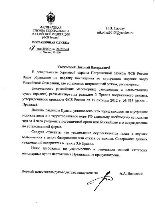 Для маломерных судов.Переписка с ФСБ Россииbormanulik писал(а): До сих пор с их письменным ответом в море хожу..
