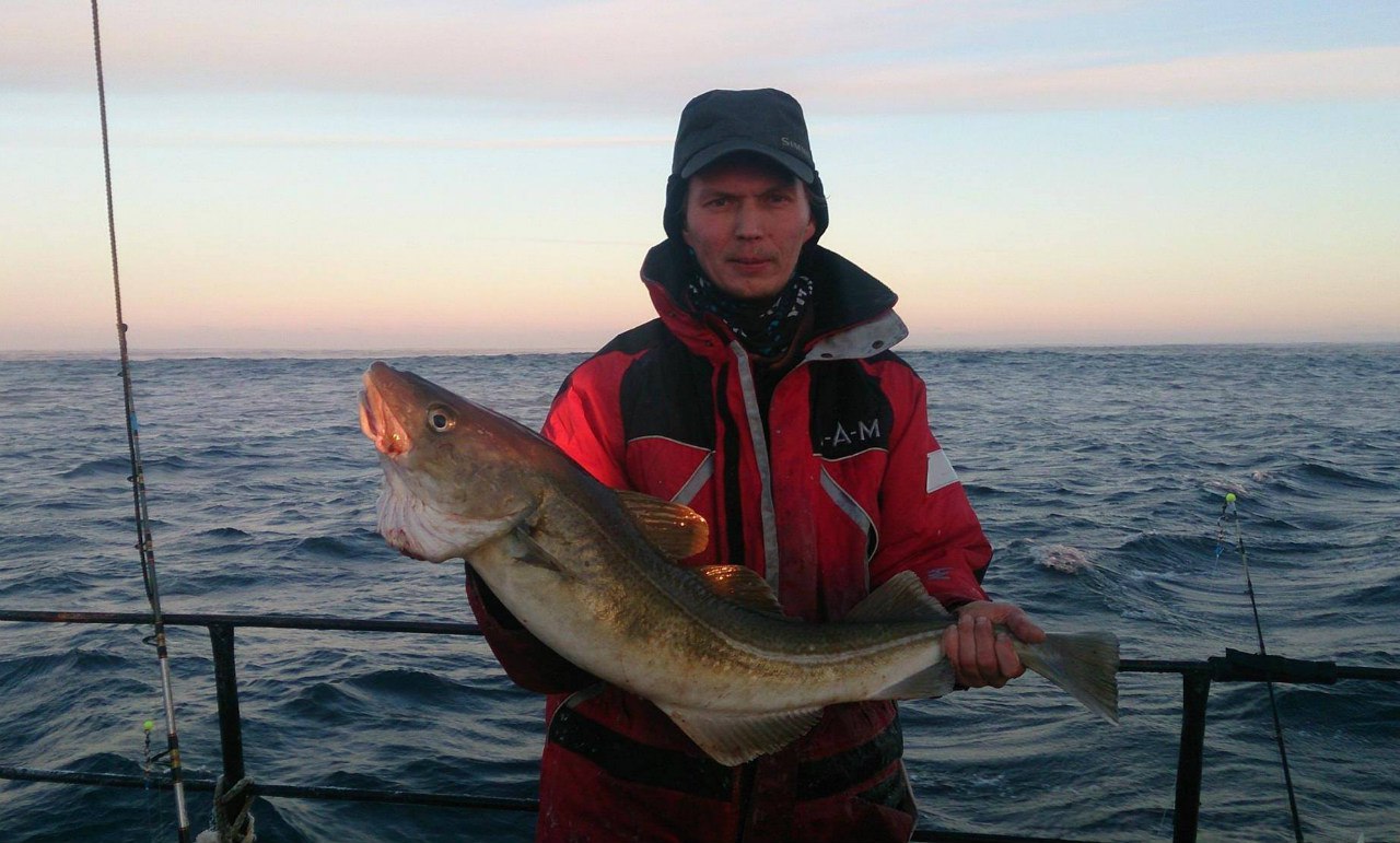 В субботу ходили из Ура Губы, благо ветер южных направлений позволяет рыбачить, ловили от западного рукава до М. Толстик, к обеду хорошо брала треска ,иногда сайда не пропускала снасть, пикши почти не было, когда собрались уходить, решил порезать на крайний заход селедку, хвост и голову на тройник дурака, остальное по крючкам, закинул поднял пикшу 1,5+,когда команда снасти на борт, у меня пунда шла ко дну ,не прошло и минуты-удар и тишина, удилище 300-500 прогнулось, стал подумывать о зубатке или ползучем, но вес как-то не очень большой, да и на пониженную на 2-х скоростном мульте не переходил, через 120м со сносом(определяюсь по крашенной плетне приближенно, поднял красного окуня весом.... 3кг.800г,на корабельном бизмене показывал 4,5, перевесил дома наэлектронных-3,8, фото на корабле могут выложить почти все присутствующие кроме, меня, тел. texet предназначен для разговоров, колки орехов, падениями на 2 этажа по лестнице, пишут, не боится воды, батарея на неделю,но для фото-увы получилась расплывчатое фото, дома есть во вех ракурсах, фото ещё не выкладывал, если кого заинтересует попробую закинуть, кстати сегодня его успешно покоптили и потребили вместе с копчённой сайдой,а ещё видел своими глазами плетню-0,8мм, на вопрос -тунца или парусника брать будем, ответ пусть будет при первом же забросе 300г. пунды собрал в кучу троих, перецепил на 500г все равно несло,благо я от него 4 стоял, под раздачу не попал больше.