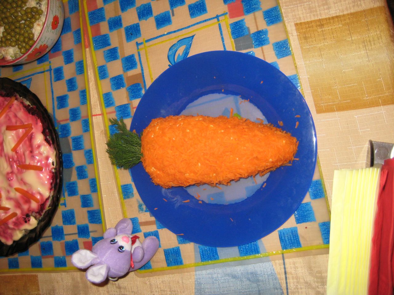 А это на Новый год готовила. Морковка из сыра натертого с чесноком и майонезом