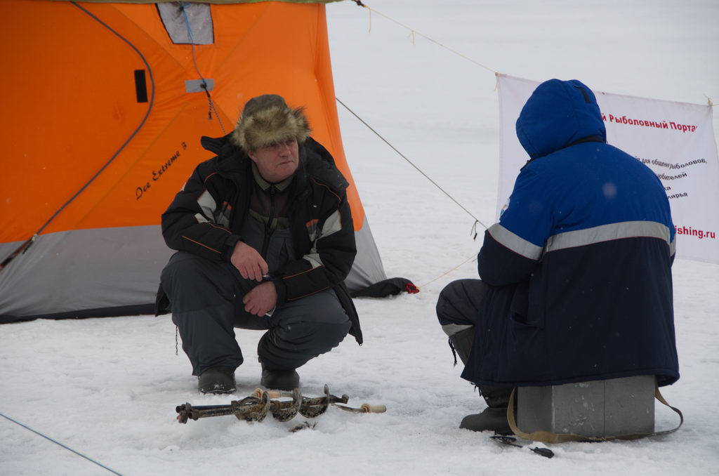 На льду озера,на том примерно пятаке где ловят корюшку(немного в сторонке, чтобы не мешать рядовым обывателям ловить свою рыбу), организовываем палаточный лагерь, выставляем флаг Мурман-фишинга, расставляем столы, мангалы, делаем большую поляну.