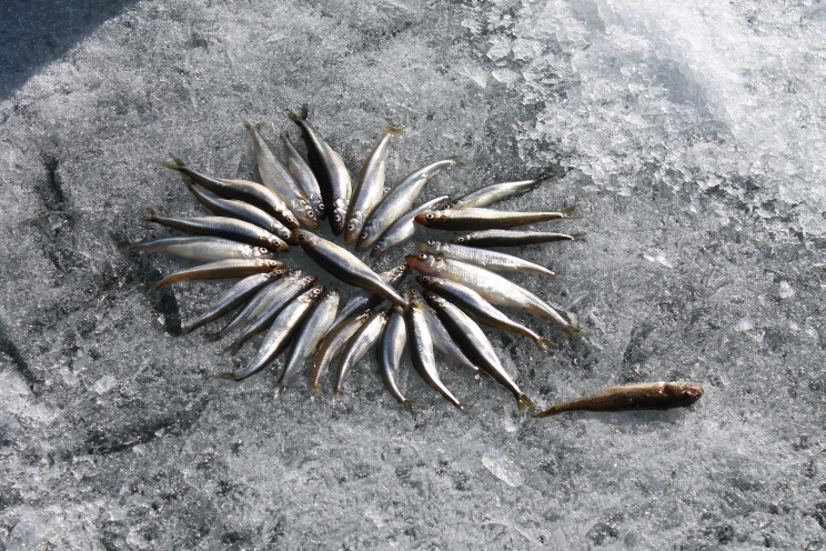 Этой всё равно какая погода, клюёт. Правда много мелочи. Народ говорит, что крупная после 16-ти. Но я. досидев только до 13-30, пошёл домой. Достал сильный ветер(лёд игольчатый и леска постоянно цепляется) и временами дождь. Кг. полтора. У меня сигов не было, но кое кто поймал. Говорят, что тоже вечером.