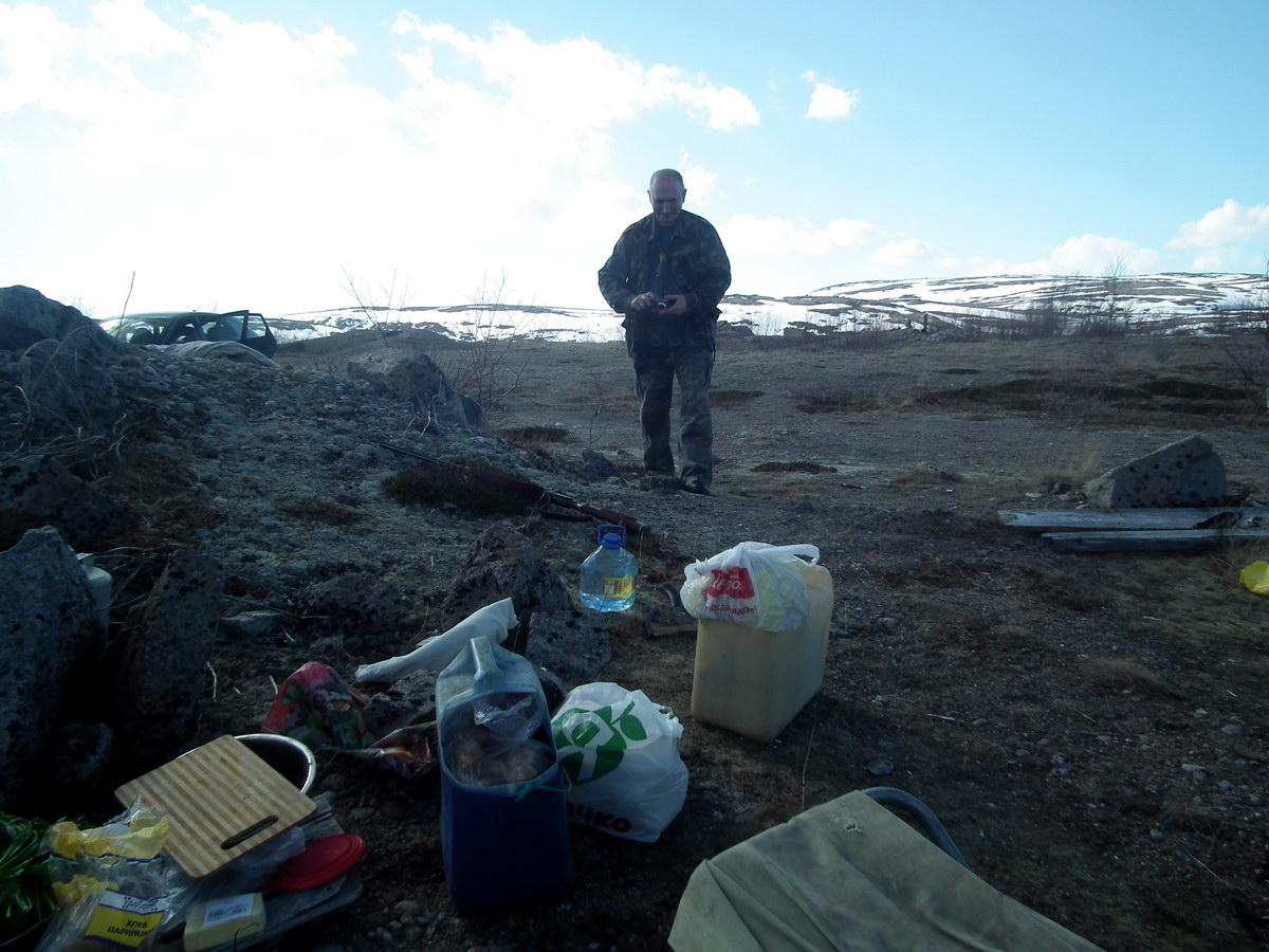 А пока над нами блистало голубое небо и дул теплый ветерок. Гуси и селезни летали, но не густо и высоко, поэтому охота обещала быть трудной, что, в принципе нас вполне устраивало. Перво-наперво мы, по заведённому у нас правилу, поставили наш надёжный двуслойный ... "домик" Алексика-Эксплорер-3, затащили внутрь коврики и спальники. Потом собрали ружья и приступили к ожиданию. А дальше смотрим фоты: