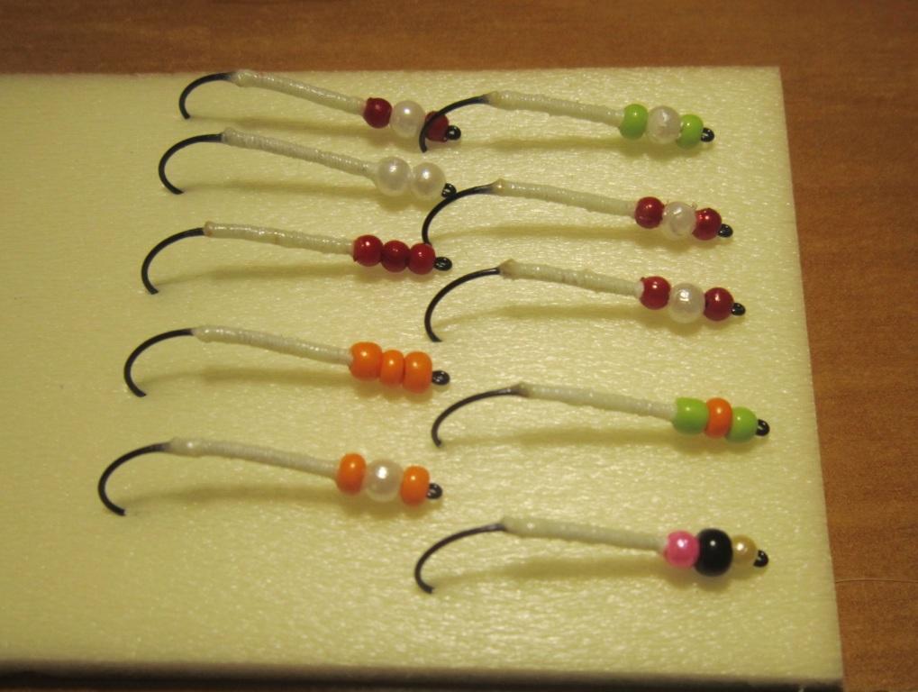 В общем, надыбал тончайших и острых гачков Мустад 6-8 размеров с длинным цевьем. Изобразил такую вот лабуду на тоненьком стерженечке.