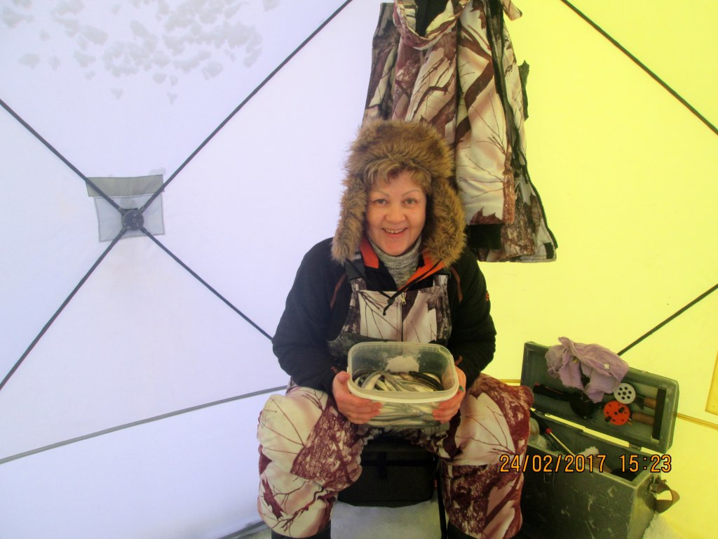 Погревшись в палатке, перекусив, еще раз на эту лунку вышла: уже похуже, за 15 мин всего дюжина.