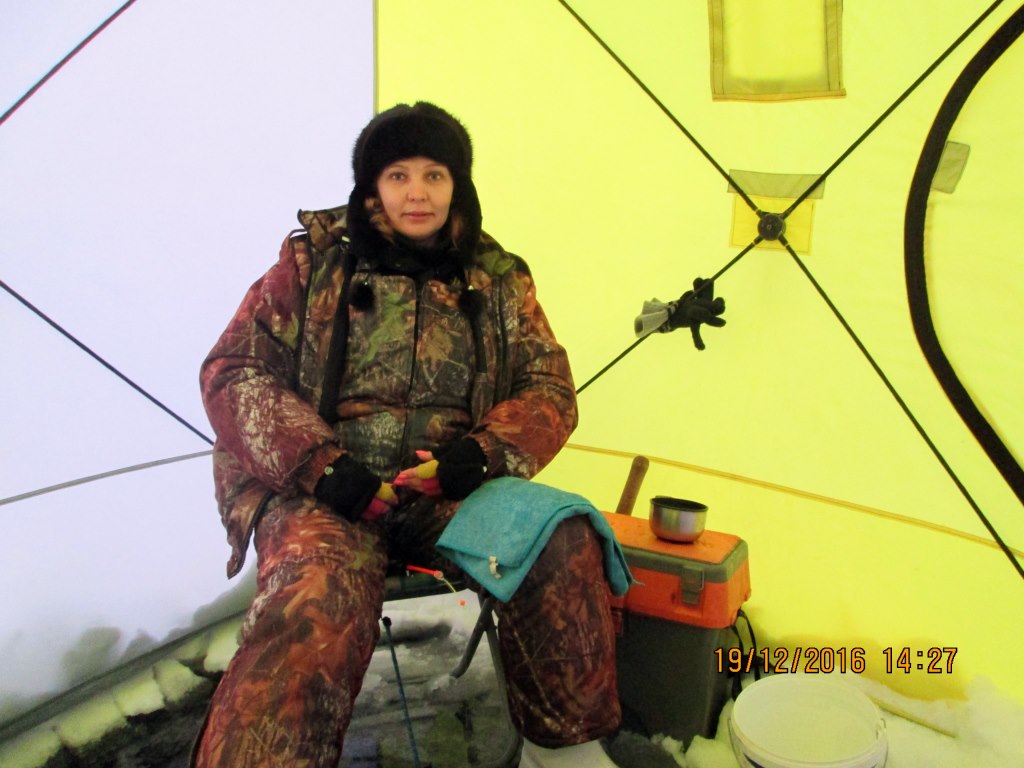 Погревшись в палатке, перекусив, еще раз на эту лунку вышла: уже похуже, за 15 мин всего дюжина.