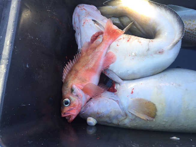 В общем на Восточном Кильдине мы оказались только в 10. За два часа сменили пару мест и успели наловить активно клевавшей трески около 50 кг. (шкерки). После 12-ти клёв как обрубило. Поменяно с десяток мест. Поймана только та треска, которая (предположительно) была разбужена прямым попаданием пунды. Ещё плюс около 10 кг. шкереной за последующие четыре часа. Все в среднем 2-3 кг в шкерке.