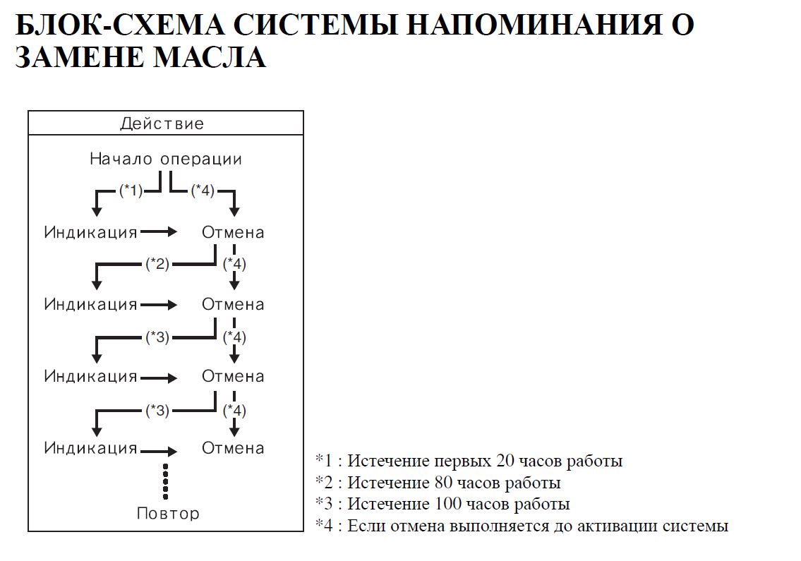 Когда общее количество часов наработки достигнет предварительно запрограммированного значения, при включенном двигателе предупреждающая лампочка будет мигать.