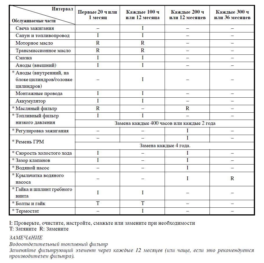 (См. раздел «ОСМОТР И ТЕХНИЧЕСКОЕ ОБСЛУЖИВАНИЕ МОТОРА» и последнюю страницу.)