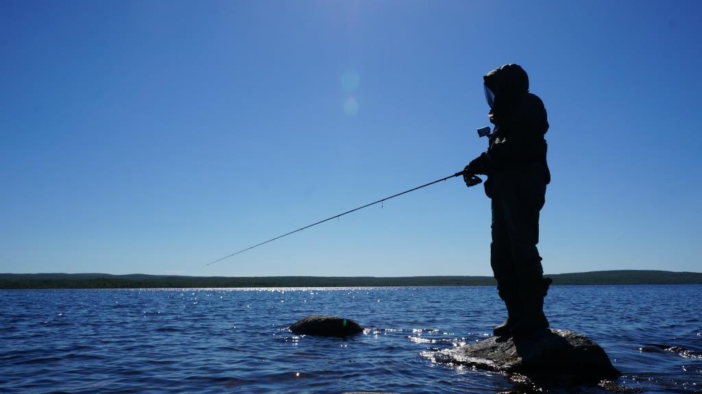 походив еще, часа два, идем к лагерю на озере. по прибытии наблюдаем полный штиль и редкие плюхи на глади озера. все же рыбка в озере есть ! прыгаем в лодку и пытаемся ловить, кидая вертухи в места плюхов
