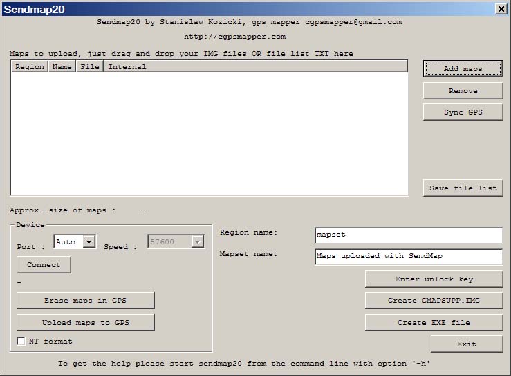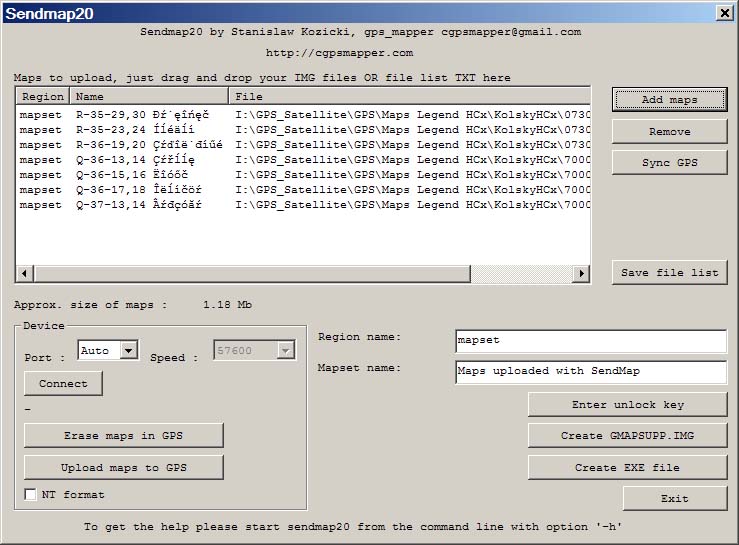 - Скачиваем, запускаем. Если язык интерфейса не устраивает, выбираем другой. Выбираем параметры и раставляем галки, как у меня. Правда, если навигатор со встроенной памятью, и карты в ней, источник надо выбрать GPS. Натравливаем на файл GMAPSUPP.IMG, где он там у нас лежит. Жмем кнопку Список карт - создать.