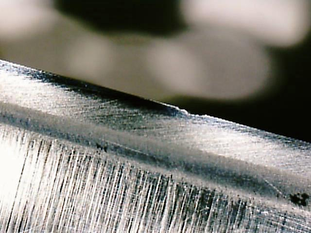 как на четвертом снимке. При длительной эксплуатации, в результате получаем микротрещины режущей кромки, каковые и приводят к крошению металла. ИМХО.
