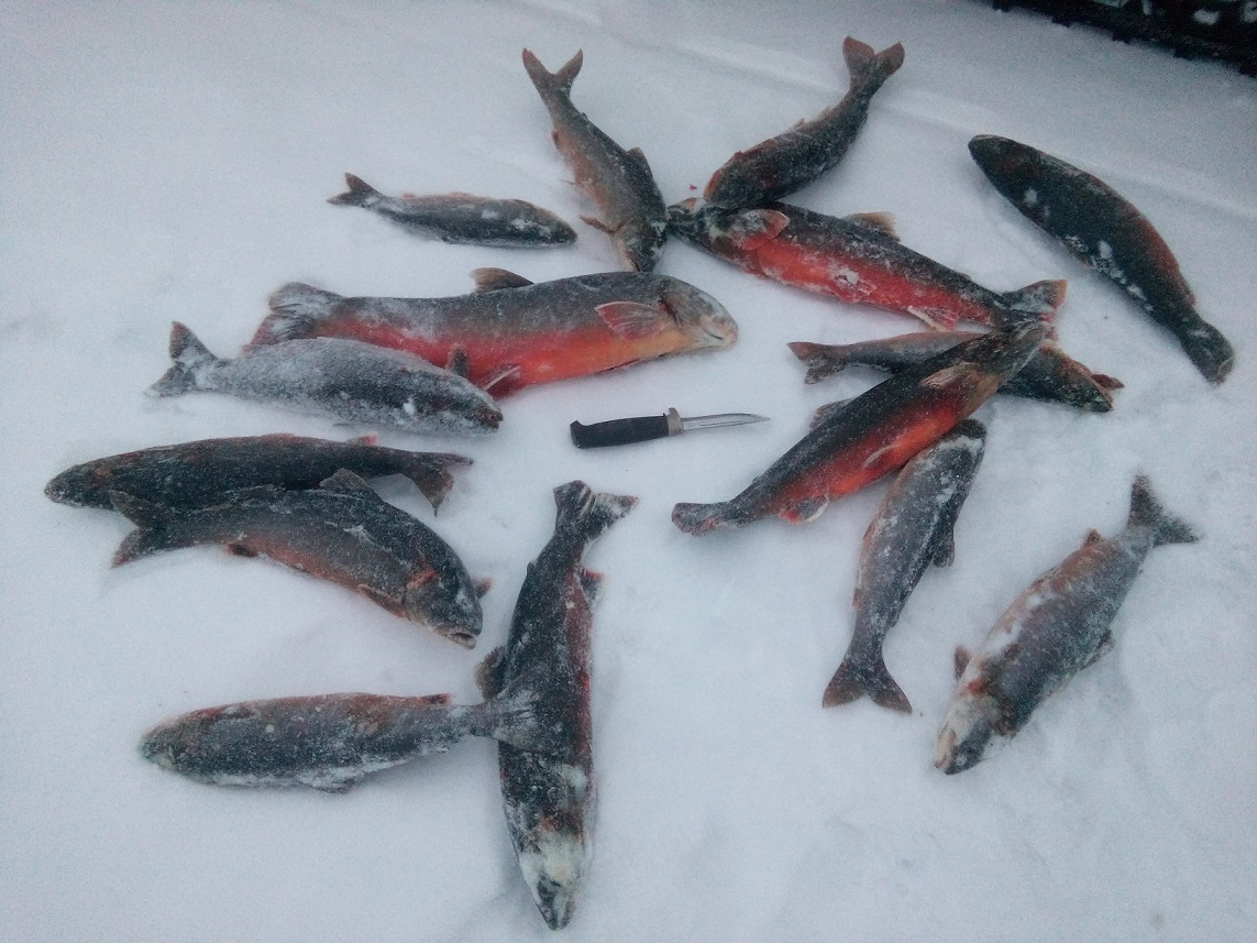 Мурмаш писал(а):Вчера были на Ревдозере. День короткий и приехали опять поздно. Ловили с 11 до 14 часов. На двоих штук 70 ряпушки. Икрянок уже меньше. Больше мелких самцов и похоже отметавшихся самок.