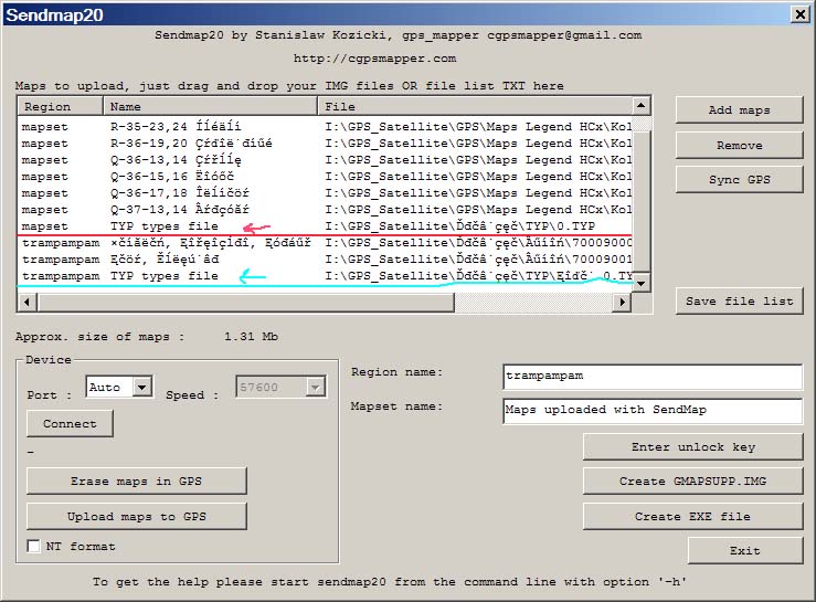 Если мы хотим использовать и его, надо перед тем как создававать список карт в SendMap, проверить, что написано в поле "Region name" и закинуть в список карты и относящийся к ним TYP файл, не меняя этого названия. Потом изменить название в поле "Region name" и добавить в список прочие карты, тоже, возможно, имеющие рассчитанный уже на них TYP файл.