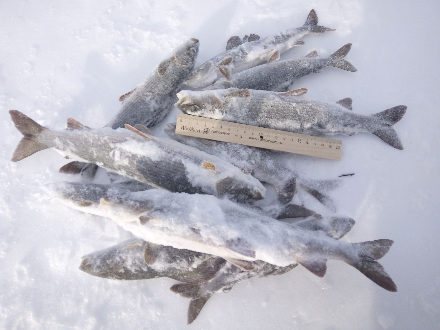 , лунки заносило в течение двух-трёх минут, палатку еле воткнул... Поэтому фоток не делал, только одну - бичам своим показать, а то мы ж любим присвистнуть, руками развести