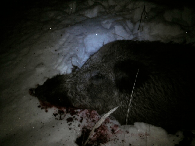 Но вдруг загонщик орет по рации что кабан прейдя дорогу ломанулся в сады