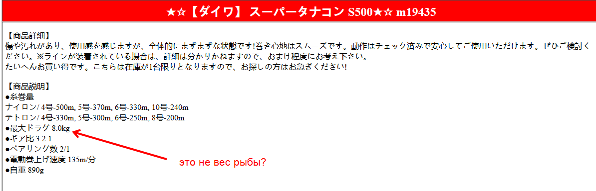 АнатолийС писал(а):Никогда небыло электрокатушки. Впервые наобум поучаствовал в Японии на аукционе и выиграл б.ушную "Daiwa S500"...Жду. Пойдёт мне для начала? Только начинаю вникать в эту тему.