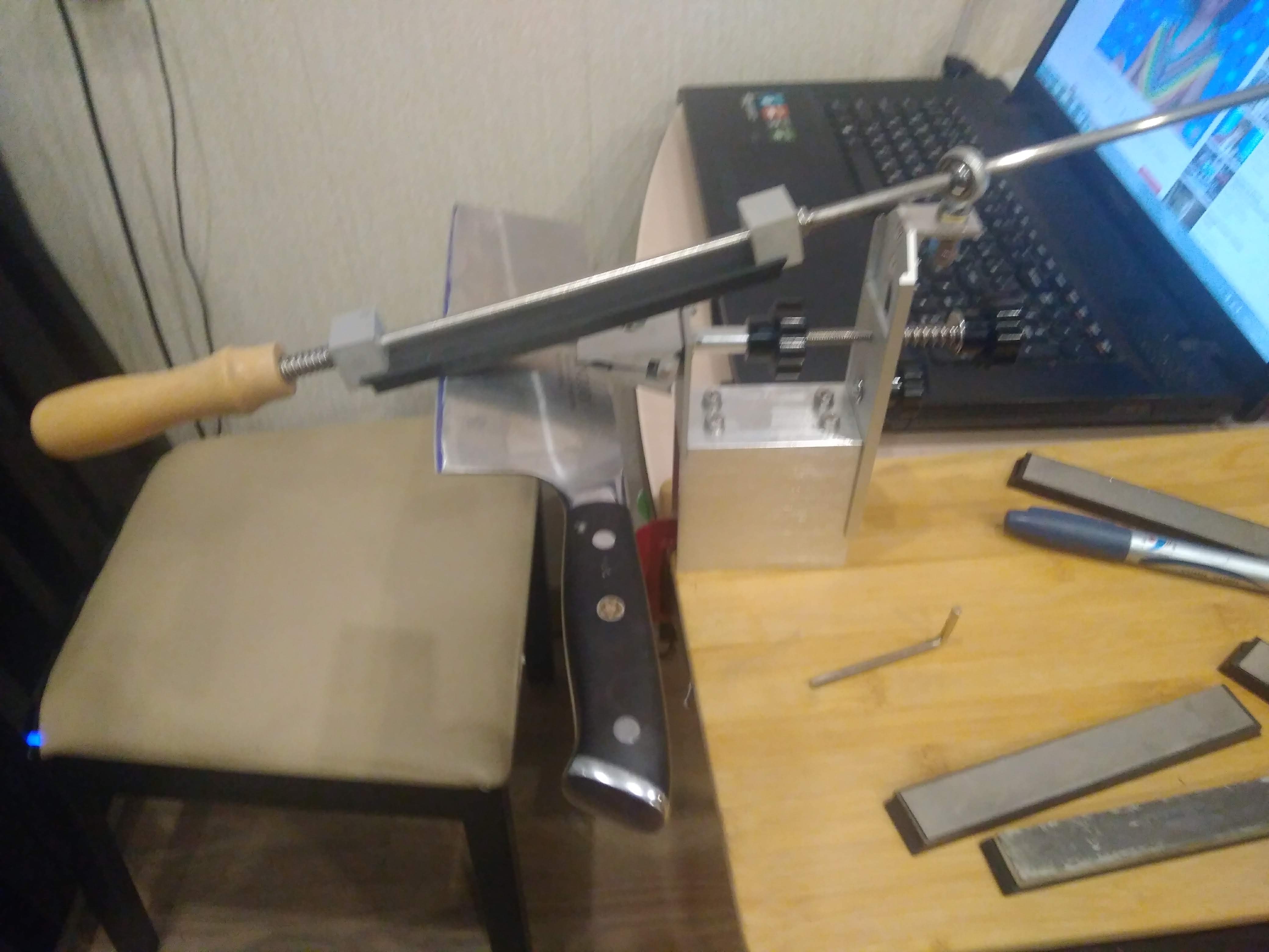 may писал(а):заказал тестю в подарок точилку для ножей - слизана с Апекс-5, сегодня испытал... Собирать пришлось по ютубу - инструкции в комплекте хрен, но в результате понравилась. Сделана достаточно аккуратно, всё металлическое, в использовании удобней, чем моя старая. Единственно - филейник, похоже, на ней заточить не получится - конструкция выставить маленький угол (меньше 15* на сторону) не позволит. А обычные ножи отлично - раз-раз и руку бреют.