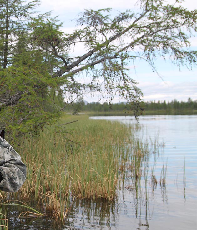 Дальняя от моря часть водоема - эт широкий мелководный разлив, практически лишенный каменистого грунта - только ооочень узкая полоска вдоль берега, а все остальное - заиленный песок. Голец, как правило, тут только транзитом. Основной обитатель - сиг-пыжьян, Но он тут сидит исключительно на моллюсках, которых вырывает из песка. Ловить - бессмысленно.