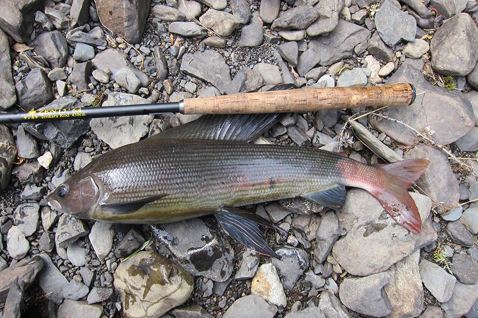 Дальняя от моря часть водоема - эт широкий мелководный разлив, практически лишенный каменистого грунта - только ооочень узкая полоска вдоль берега, а все остальное - заиленный песок. Голец, как правило, тут только транзитом. Основной обитатель - сиг-пыжьян, Но он тут сидит исключительно на моллюсках, которых вырывает из песка. Ловить - бессмысленно.