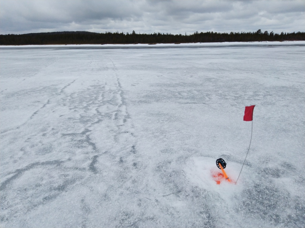 Через Белоусиху уже хода нет, середину вспучило, по берегам воды на полметра, у водокачки видно несколько промоин, в которых журчит темная вода. На лыжах можно было рискнуть, случалось такое, на снеже очково - встрянешь с санями под крутым берегом в луже. Кароч, испытали легкий облом и пошли в обход, через Рунг. Забрались на гольцовые озера, там зима-зима, ни одной проталины. Йобанка периодически, с небольшими паузами, сводила видимость к нулю. Сутки на верхних озерах - ни поклевки. "здесь рыбы НЕТ!(с)