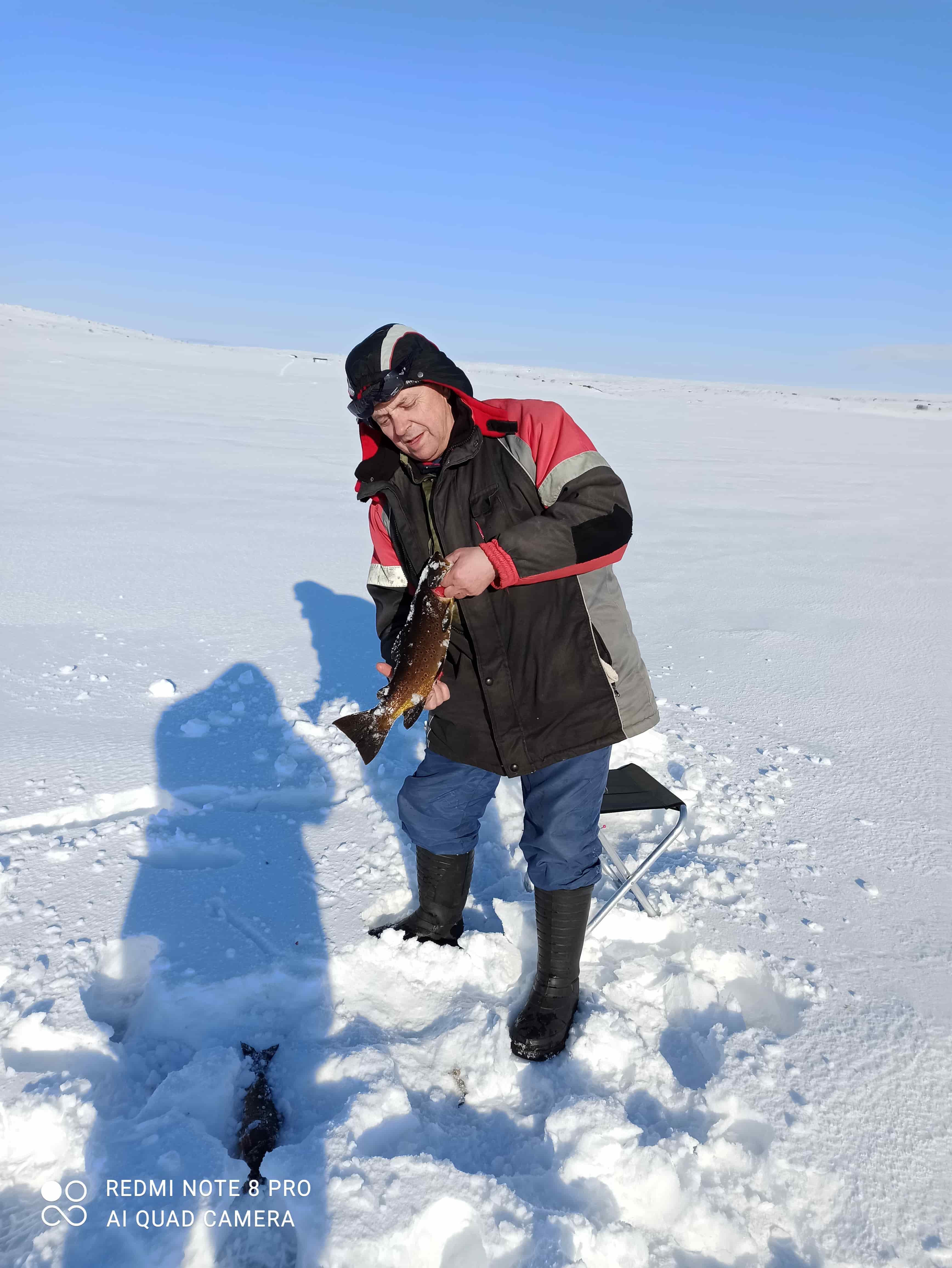 ruslik066 писал(а):В четверг тоже был на серебрянке одним днем. Куда хотел доехать не доехал,опять цепь порвало на буксе,замок поставил, и оставался всего один в запасе. Не рискнул дальше ехать. Остановился на ближайшем,не знакомом мне озере. Был с женой и дядей. Сразу с первой лунки жена достала двух гольцов, пробурив 3 лунки мотобуром,мы его успешно сломали,сломали ручку,за которую его держишь,лопнул металл. В итоге кое как ручным сделали еще три лунки. Итог 11 гольчишек и 2 хороших схода еще. Клевал с 8 до 11, потом пауза часа 3 и снова с дядькой достали по одному. И снова тишина,досидели до 18 часов,ждали может вечером снова поклюет,но не срослось. Тундра сказка, едешь даже в горку по целине втроем как по асфальту. Лица сгорели капитально, был штиль и очень солнечно. Скоро выложу коротенькое видео, снимать почти не снимал. Поехал не спавши вообще. Даже там заснул сидя в волокушах. Всем НХНЧ.