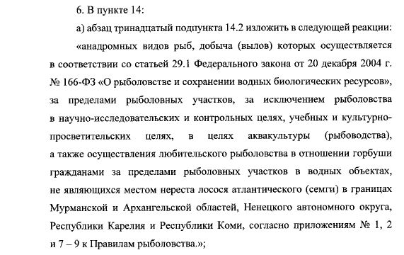 Мурмаш писал(а):Из пункта 14.2 вытекает, что можно ловить горбушу за приделами рыболовного участка в водных объектах, не являющимися местами нереста сёмги. Если так, то очень хорошо.