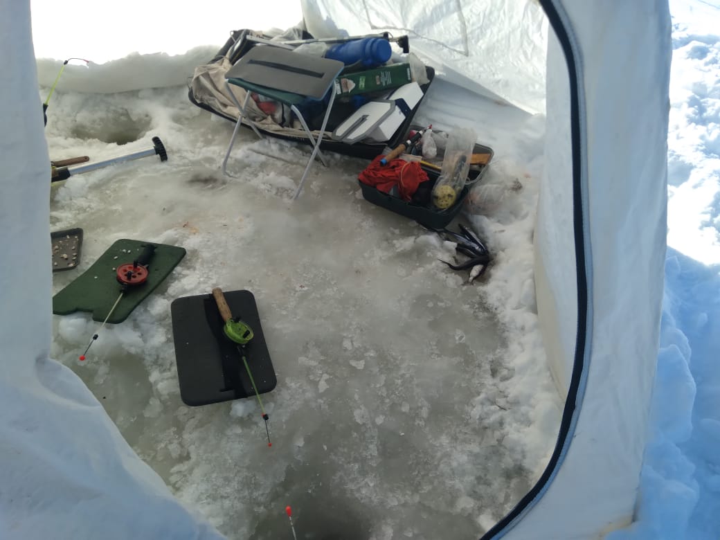 В общем, удовольствие получено. Рыбу не считал, на вес 2,5 кг. Сосед поймал 54 корюшки и налимов.