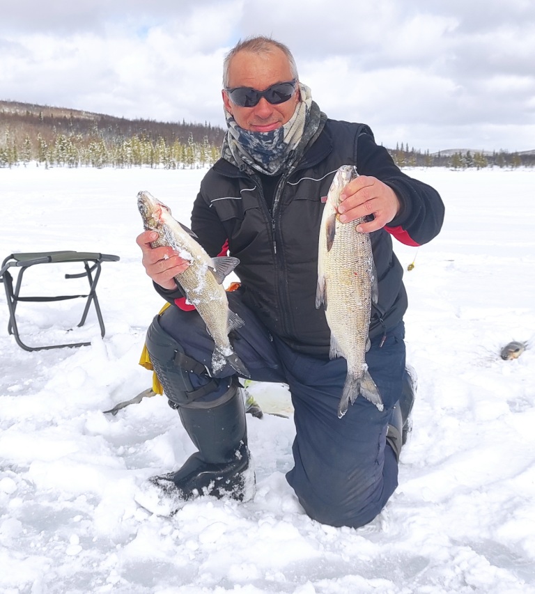 . Окунь только на глубине, ввиду размера не очень нравится его ловить. Первый раз на этом озере попробовал три поставушки на щуку с заранее замороженными мёртвыми мелкими рыбками из других водоёмов. Старания увенчались успехом в виде хорошей щучки. Шкеренную и обезжабренную взвесил дома- 3,2 кг. Процесс "вываживания" и завода в лунку очень даже понравился, там ещё воды на пол сапога было возле лунки для полноты ощущений ).