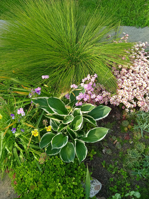Гортензии не растут, какая то одна мучается 5й год, не умирает и не растёт. А кочка здешняя, рядом с морем выкопала