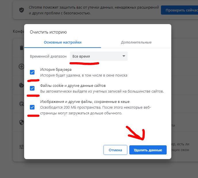 открыть браузер (1 вкладка, лучше "новая"), нажать одновременно шифт+контрал+делете и очистить ВСЁ за ВСЁ время, но после этого придется на все сайты заново логиниться