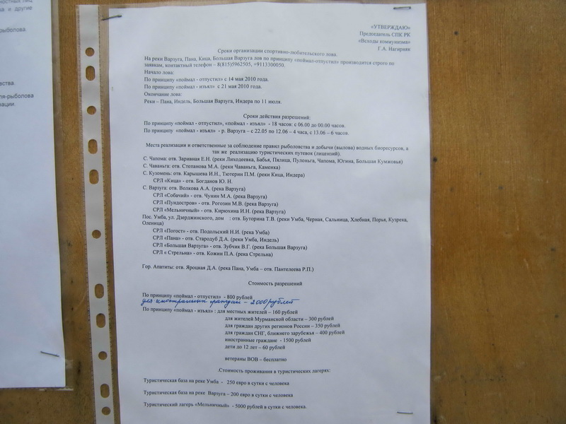 Заезжать бум через Апатиты, а там до моста по дороге на Октябрьский. То есть в поселок Умба не попадаем ни каким образом, а рыбки в походе покушать хоцца. И вот вопрос, как же быть с лицензией? В принципе мы даже не против ее купить, другой вопрос как и где ее купить?!?! Пос. Умба я так понимаю у нас будет в самом конце маршрута